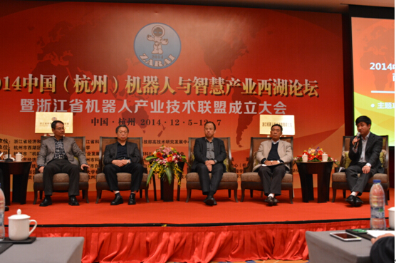 2014年12月6日, 由杭州市西湖區(qū)政府、浙江大學(xué)主辦的2014中國(guó)(杭州)機(jī)器人與智慧產(chǎn)業(yè)西湖論壇在杭州西溪濕地舉行。國(guó)內(nèi)外機(jī)器人行業(yè)專家、企業(yè)代表400余人共聚此地,西湖論道,謀劃未來(lái)。