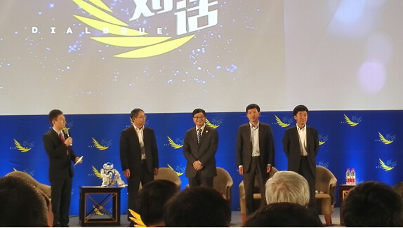 央視2套《對話》節(jié)目對大會訪談進行了錄制,圖為央視著名節(jié)目主持人陳偉鴻與新松公司總裁曲道奎、亞洲制造業(yè)協(xié)會CEO羅軍、德國漢堡大學(xué)正教授張建偉和新加坡工程院院士葛樹志在錄制現(xiàn)場