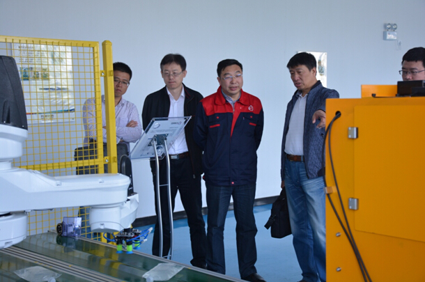 白相林教授一行首先對研究院的主要工作、業(yè)務戰(zhàn)略定位、研發(fā)團隊和研發(fā)平臺搭建等情況進行了了解。隨后,參觀了我院的展廳、研發(fā)試驗場和實驗區(qū),重點了解了目前研究院6個重點研發(fā)項目的開展情況以及現(xiàn)有的研發(fā)設備,并觀看了醫(yī)用液袋自動揀選線系統(tǒng)、機器人上下料系統(tǒng)、爬壁機器人等機器人系統(tǒng)的演示。