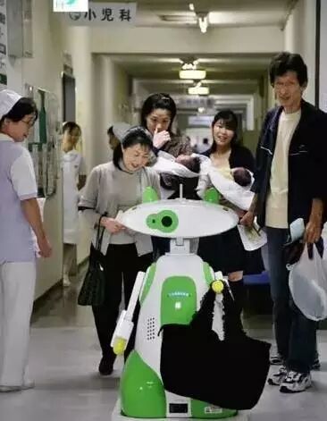 這是九年前日本醫(yī)院里幫忙提包的機(jī)器人。當(dāng)然,它還有很多其他功能,比如說問詢。