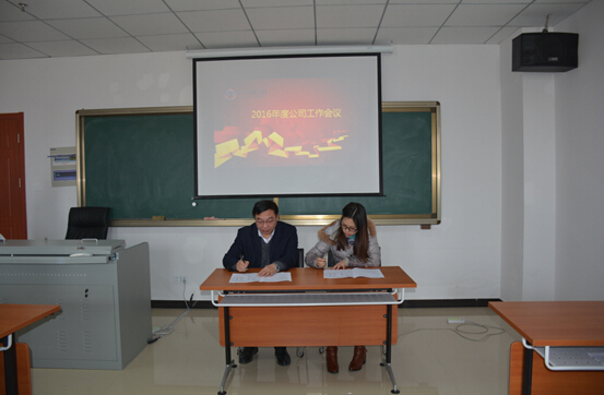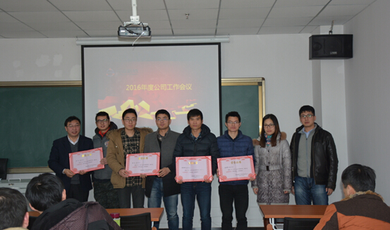 會上,對2015年度優(yōu)秀員工張艷朋、莊金雷、胡飛、倪陽四人進行了現場表彰,并頒發(fā)了榮譽證書。公司前研中心、工研中心、服研中心、綜合管理部和項目管理部的負責人,分別與公司總經理簽訂了2016年度的目標責任狀。