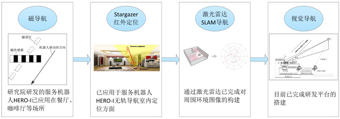 在室內(nèi)定位導(dǎo)航系統(tǒng)中,目前主要采用的是基于內(nèi)部傳感器的導(dǎo)航、磁導(dǎo)航以及視覺導(dǎo)航。研究院均有技術(shù)儲備,并在部分領(lǐng)域?qū)崿F(xiàn)了應(yīng)用。