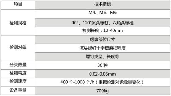 1)單臺(tái)設(shè)備可適應(yīng)多種規(guī)格混雜螺釘?shù)臋z測,無需人工對設(shè)備進(jìn)行調(diào)整,設(shè)備適應(yīng)新廣、自動(dòng)化程度高;