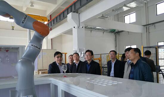 畢普民副市長一行深入到哈特研究院智能裝備研發(fā)中心,聽取了研究院高云峰總經(jīng)理關(guān)于公司成立背景、發(fā)展概況以及未來戰(zhàn)略布局等情況的介紹。并詳細(xì)了解了研究院在工業(yè)機(jī)器人及智能制造方面開展技術(shù)研發(fā)所取得的成果,以及在產(chǎn)業(yè)化方面取得的成績。