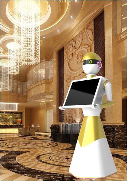 該產(chǎn)品是一款用于公共場所進行迎賓講解,語音互動服務(wù)用的新型迎賓機器人,具有語音對話、迎賓講解、無軌導(dǎo)航、自動避讓、歌曲點播、手機電腦無線控制等功能,能夠代替或者部分代替人員提供服務(wù),提升品牌形象,具有較高的經(jīng)濟價值。 可應(yīng)用于酒店、商場、風(fēng)景區(qū)、企事業(yè)單位等場合。