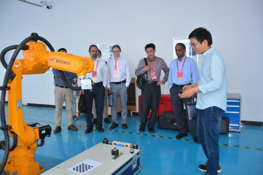 研究院機(jī)器視覺研發(fā)中心副主任莊金雷博士向?qū)<覀兘榻B了研究院的發(fā)展情況,并陪同參觀了視覺實(shí)驗(yàn)場(chǎng)地。隨后前往會(huì)議室進(jìn)行會(huì)談,機(jī)器視覺工程師陳盟介紹了研究院正在研發(fā)的管件測(cè)量系統(tǒng),并提出了在實(shí)施系統(tǒng)功能時(shí)遇到的機(jī)械臂運(yùn)動(dòng)規(guī)劃等問題,專家們?yōu)槲以禾岢龅膯栴}進(jìn)行了細(xì)致的解答,并提出了專業(yè)建議。專家們熱忱的態(tài)度讓我院參會(huì)人員紛紛表示感謝,并希望將來有更多和中外專家交流的機(jī)會(huì)。