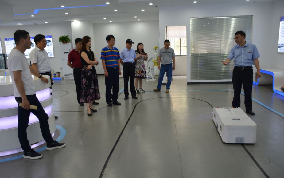 在圖文并茂的宣傳展板前,我院高云峰副院長重點介紹了研究院的主要科研方向、人才團隊建設(shè)、研發(fā)平臺建設(shè)等情況。隨后陪同李偉一行參觀了服務(wù)機器人展廳和機器視覺實驗室,展示了工業(yè)自動引導(dǎo)小車(AGV)現(xiàn)場演示,詳細介紹了研究院在工業(yè)自動化系統(tǒng)集成應(yīng)用方面的技術(shù)研發(fā)及市場應(yīng)用情況。