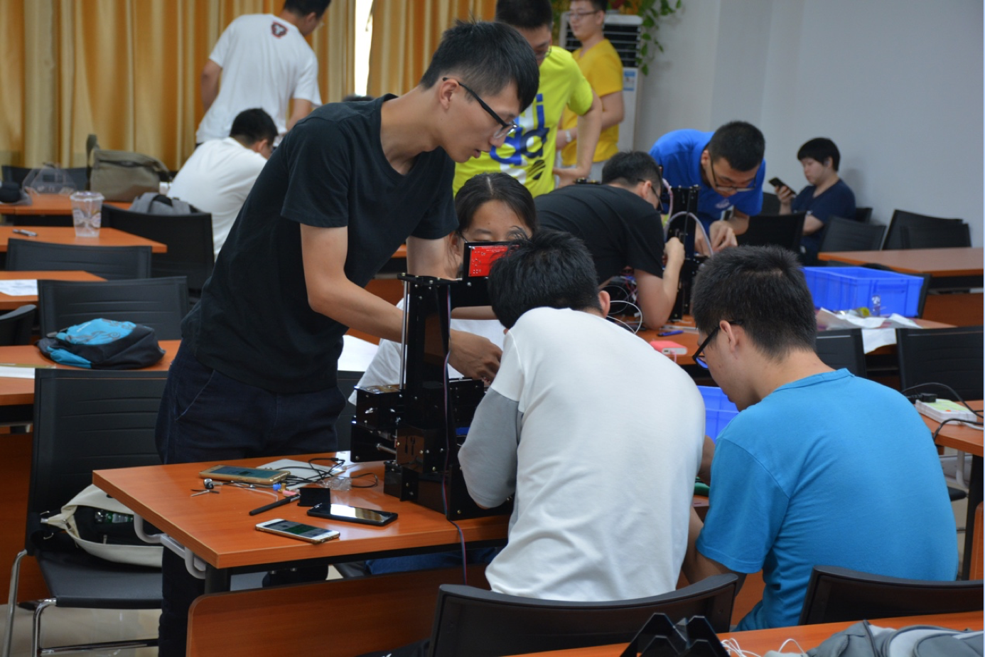生產(chǎn)實踐環(huán)節(jié),導師方小偉、王浩分別向?qū)W生進行了AGV和3D打印機理論基礎(chǔ)培訓后,將22名學生分成6組根據(jù)現(xiàn)階段學生實際情況公司為學生們量身定做了實習任務(wù),讓學生們以自身為主體并在公司導師的協(xié)助下完成AGV小車的裝配及3D打印機組裝。