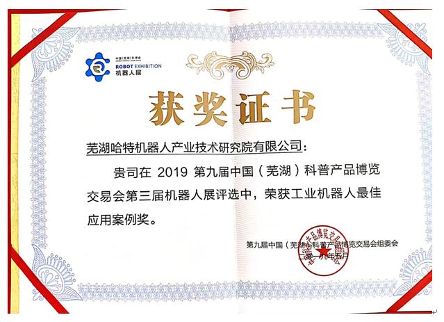 哈特機器人榮獲2019第九屆中國(蕪湖)科博會工業(yè)機器人最佳應用案例獎
