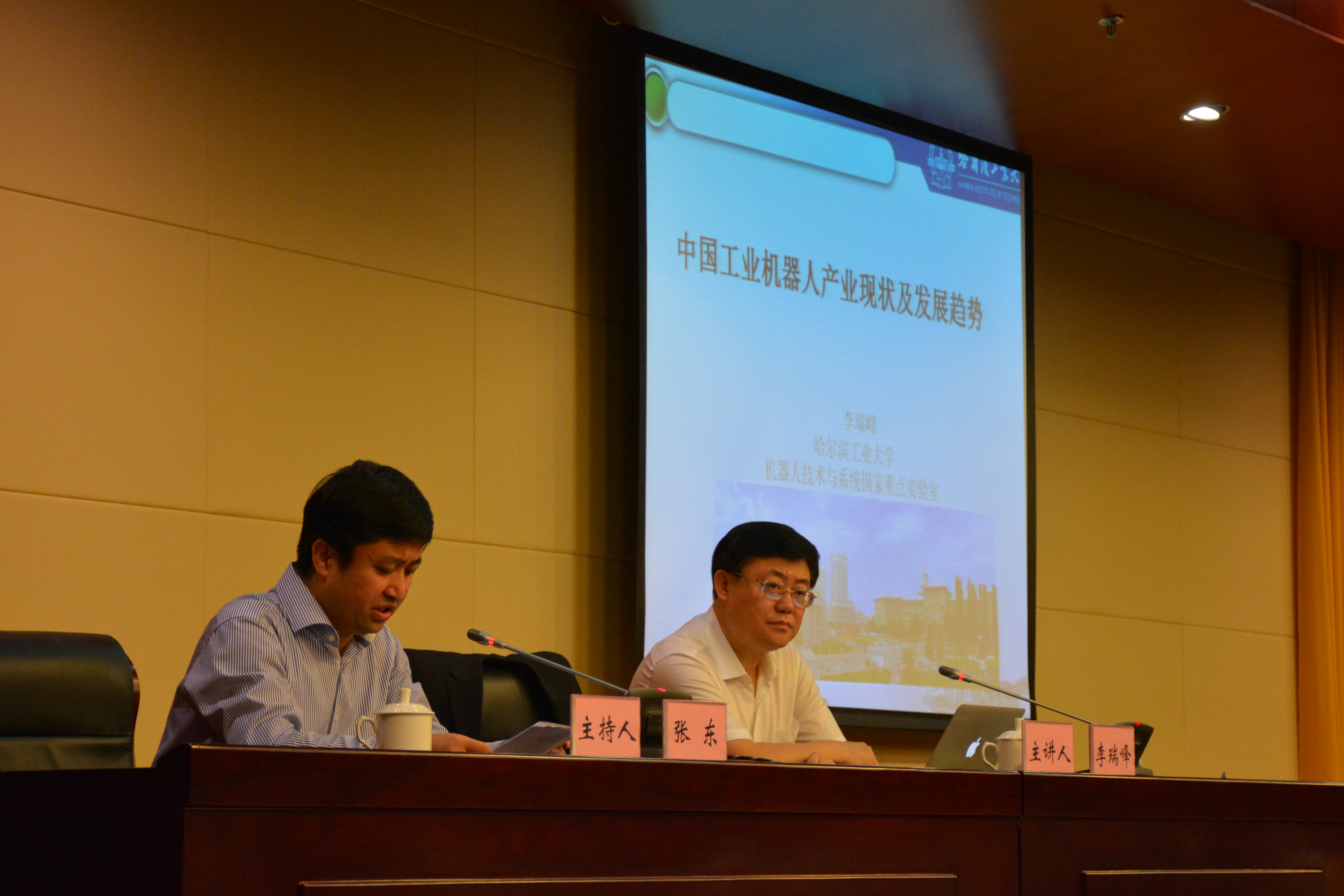 9月23日,應(yīng)蕪湖市政府邀請,哈爾濱工業(yè)大學(xué)機(jī)器人研究所副所長、博士生導(dǎo)師,哈工大蕪湖機(jī)器人產(chǎn)業(yè)技術(shù)研究院常務(wù)副院長李瑞峰教授蕪湖市政務(wù)中心舉辦“中國工業(yè)機(jī)器人產(chǎn)業(yè)現(xiàn)狀及發(fā)展趨勢”專題報告會。李瑞峰副院長圍繞機(jī)器人關(guān)鍵技術(shù)及哈工大機(jī)器人技術(shù)發(fā)展、國內(nèi)外機(jī)器人發(fā)展現(xiàn)狀和存在的問題等方面,為現(xiàn)場聽眾奉上了一場精彩報告。據(jù)悉,此次講座參加的人員包括蕪湖市政府副秘書長張東和相關(guān)領(lǐng)導(dǎo)、有關(guān)高??蒲刑庁?fù)責(zé)人、蕪湖市機(jī)器人產(chǎn)業(yè)園相關(guān)企業(yè)主要負(fù)責(zé)人和創(chuàng)新型企業(yè)、高新技術(shù)企業(yè)、知識產(chǎn)權(quán)優(yōu)勢企業(yè)代表等共計200余人。報告中,李瑞峰副院長不僅介紹了當(dāng)前國內(nèi)外機(jī)器人產(chǎn)業(yè)發(fā)展和技術(shù)研發(fā)的最新成果,還圍繞蕪湖市重點培育的機(jī)器人產(chǎn)業(yè)提出了寶貴建議。