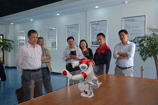 我院綜合部部長(zhǎng)徐俊向各位領(lǐng)導(dǎo)詳細(xì)介紹了研究院的發(fā)展建設(shè)情況、研發(fā)團(tuán)隊(duì)和研發(fā)平臺(tái)搭建等情況,并陪同參觀了研究院的展廳、研發(fā)試驗(yàn)場(chǎng)所和實(shí)驗(yàn)區(qū),觀看了NAO機(jī)器人人機(jī)互動(dòng)系統(tǒng)、醫(yī)用液袋自動(dòng)揀選線系統(tǒng)、機(jī)器人上下料系統(tǒng)等機(jī)器人系統(tǒng)的演示,了解了研究院當(dāng)前重點(diǎn)研發(fā)項(xiàng)目的進(jìn)展情況。