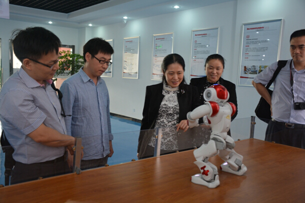吳蕾一行了解了我院的建設與發(fā)展情況、研究方向、戰(zhàn)略規(guī)劃和業(yè)務定位、研發(fā)團隊情況、研發(fā)平臺搭建和重點研發(fā)項目立項情況等,并參觀了研究院的展廳、研發(fā)試驗場所和實驗區(qū),觀看了NAO機器人、雙臂機器人系統(tǒng)和高速揀選機器人系統(tǒng)等的演示。我院研發(fā)部主管工程師周建博士陪同參觀并講解。