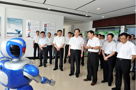 安徽省委書記張寶順觀看迎賓導(dǎo)游機(jī)器人表演