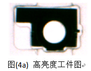 前向照明主要用于提取工件表面的信息,具體項(xiàng)目中采用的照明方式取決于光源的直射與散射、工件表面光整與粗糙及安裝的空間等狀況。以識(shí)別芯片的管腳和芯片上字符為例,相對(duì)明視場(chǎng)照明方式,采用LED散射光的暗視場(chǎng)照明方式可使字符和管腳的亮度和背景的亮度區(qū)別更加明顯。明視場(chǎng)和暗視場(chǎng)的效果圖分別如圖(5a)和圖(5b)所示。(研發(fā)部-莊金雷)