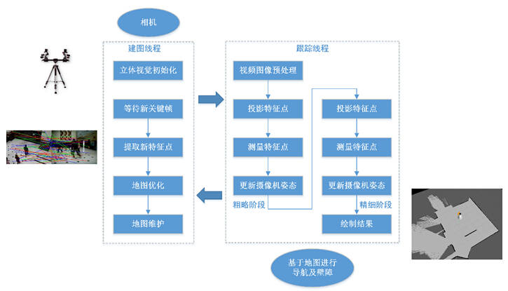 非結(jié)構(gòu)化環(huán)境中存在的大量隨機、多樣因素對移動機器人的障礙物檢測與識別造成極大干擾,針對室內(nèi)非結(jié)構(gòu)環(huán)境,利用并行跟蹤與建圖技術(shù),研發(fā)與設(shè)計服務(wù)機器人的自主定位與導(dǎo)航系統(tǒng)。