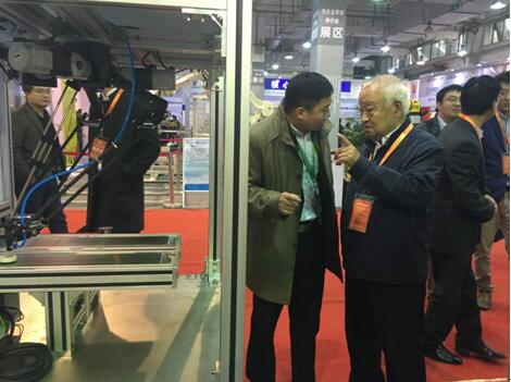 蕪湖瑞思機(jī)器人總經(jīng)理張歡喜向蔡院士介紹并聯(lián)機(jī)器人展品