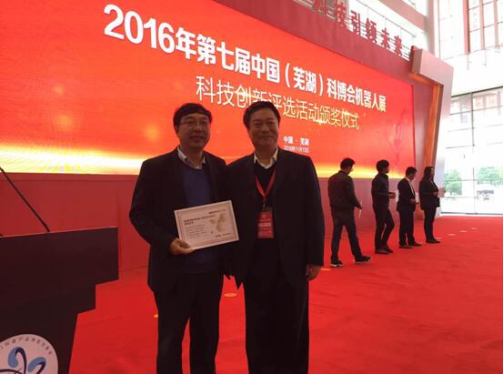 在今天結(jié)束的2016第七屆中國(guó)(蕪湖)科博會(huì)機(jī)器人展上,哈特研究院參展的油管檢測(cè)機(jī)器人,經(jīng)組委會(huì)專家評(píng)審,在眾多企業(yè)工業(yè)機(jī)器人展品中脫穎而出,榮獲最具技術(shù)創(chuàng)新獎(jiǎng)。研究院副院長(zhǎng)兼總經(jīng)理高云峰親自上臺(tái)領(lǐng)取了該獎(jiǎng)項(xiàng)。