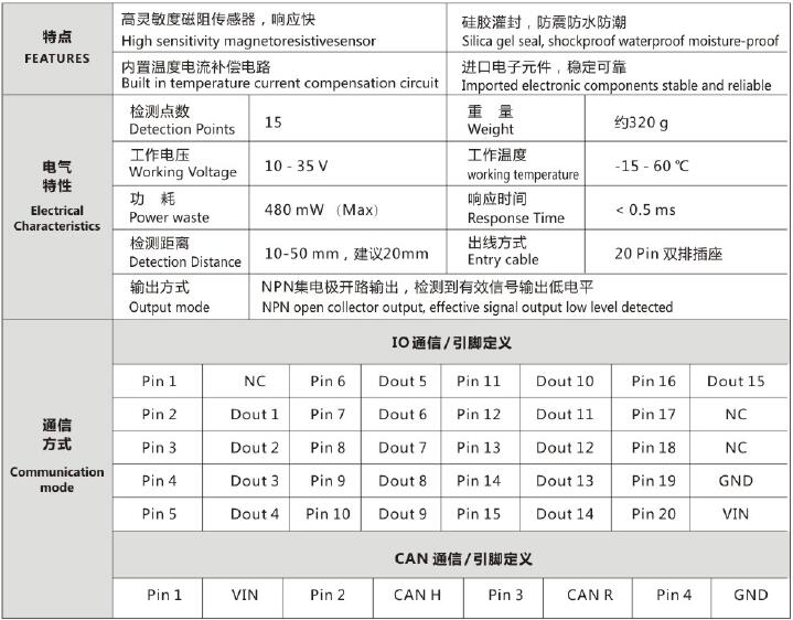 磁導(dǎo)航傳感器(檢測點(diǎn)數(shù)包括8位、9位、15位、16位、22位、26位等)通過檢測導(dǎo)航磁條的位置,為自主導(dǎo)航設(shè)備的控制系統(tǒng)提供基礎(chǔ)控制數(shù)據(jù)。系統(tǒng)可靠性高,不受環(huán)境光和地面條件的影響,操控簡單。廣泛運(yùn)用于自主導(dǎo)航機(jī)器人、室內(nèi)室外巡檢機(jī)器人、自主導(dǎo)航運(yùn)輸車 AGV、自動(dòng)叉車等自主導(dǎo)航設(shè)備。