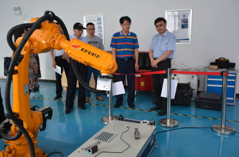 在圖文并茂的宣傳展板前,我院高云峰副院長重點介紹了研究院的主要科研方向、人才團隊建設(shè)、研發(fā)平臺建設(shè)等情況。隨后陪同李偉一行參觀了服務(wù)機器人展廳和機器視覺實驗室,展示了工業(yè)自動引導(dǎo)小車(AGV)現(xiàn)場演示,詳細介紹了研究院在工業(yè)自動化系統(tǒng)集成應(yīng)用方面的技術(shù)研發(fā)及市場應(yīng)用情況。